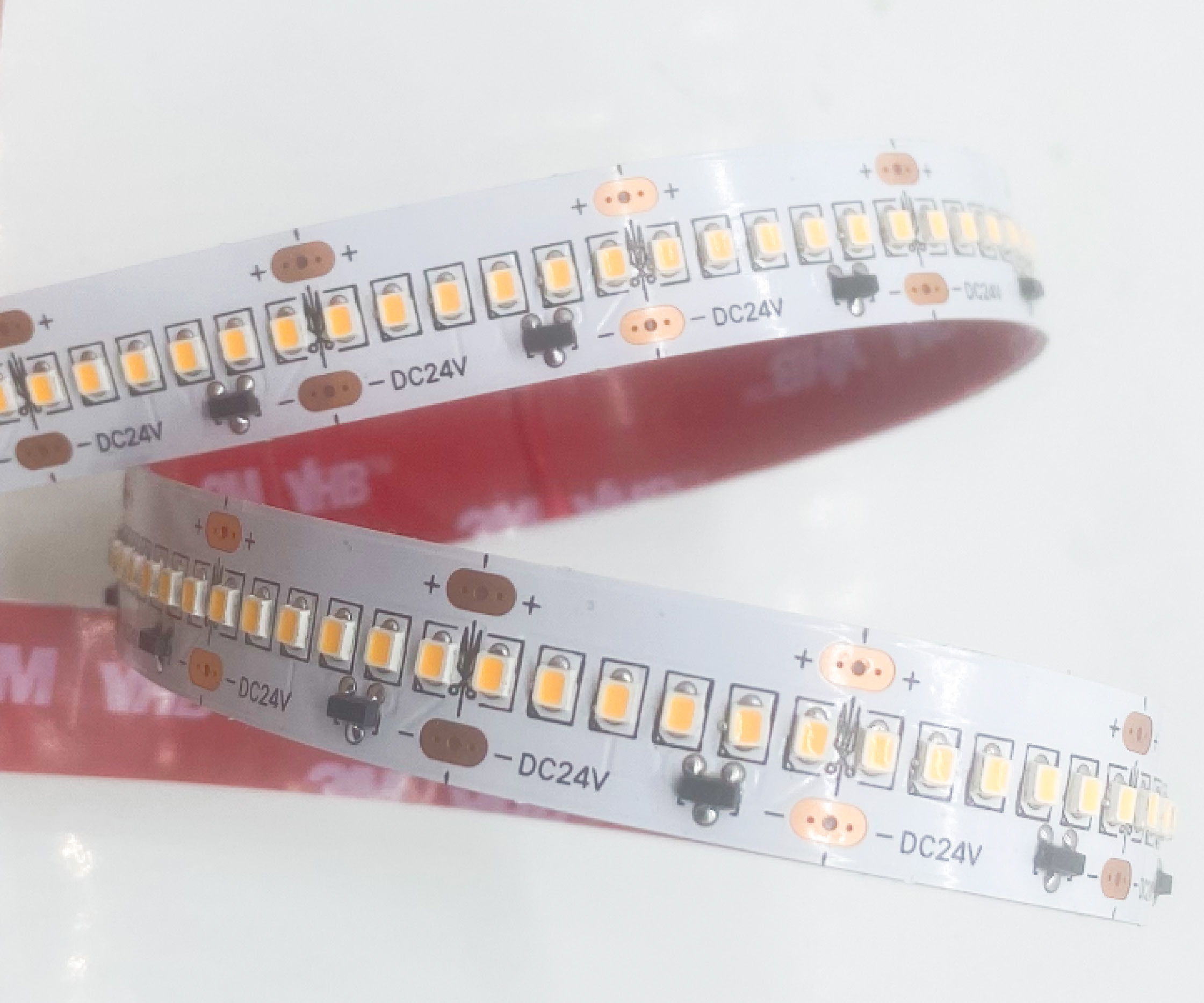 Les Rubans LED doivent être déroulés délicatement. Le ruban ne doit ni être plié, ni être tordu. A l’installation, la surface doit être dégraissée et le ruban doit être collé soigneusement sans tension sur celui-ci. Le collage du ruban s’effectue toujours hors tension.