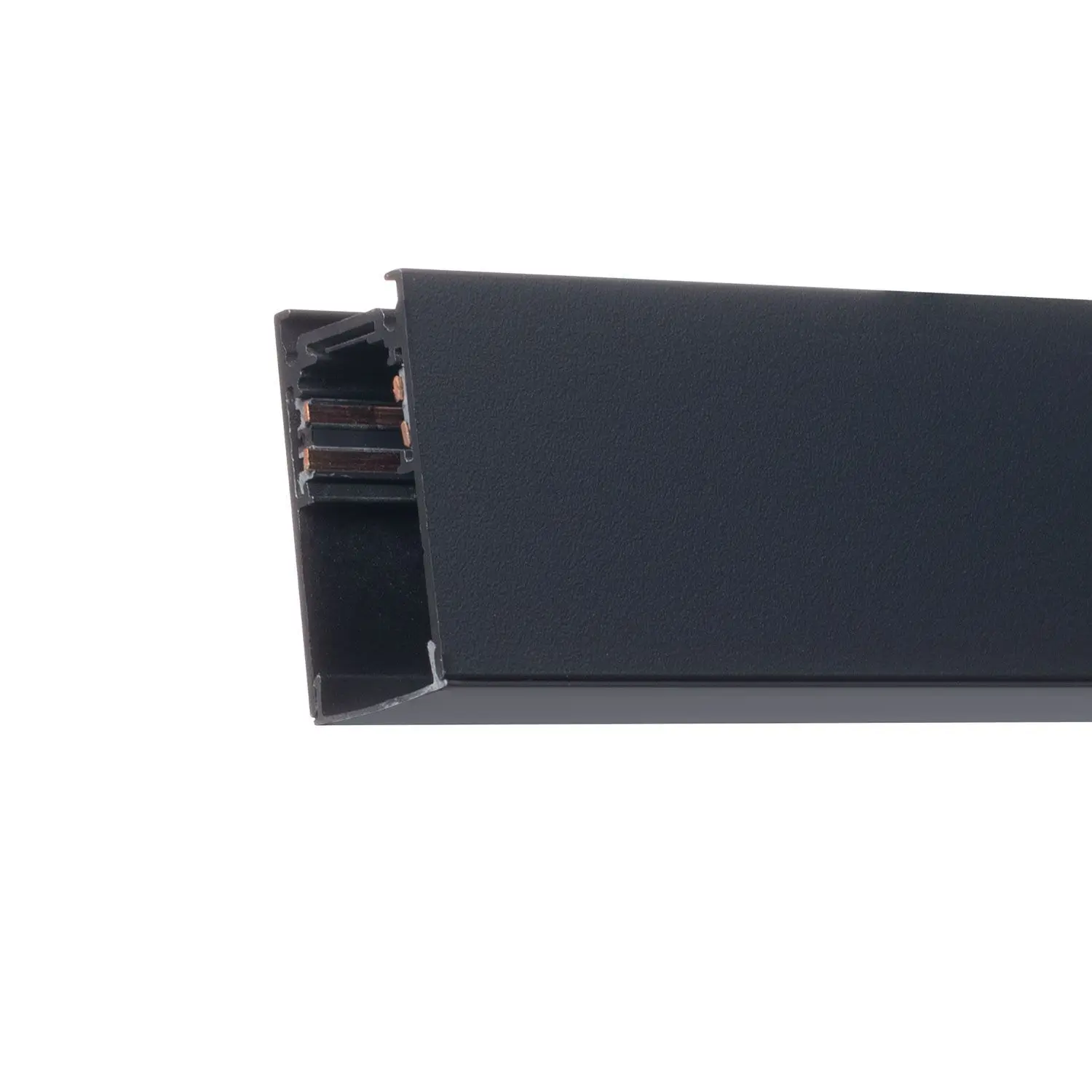 Rail apparent, noir, 200cm, 4 pôles. Inclus embouts de finition et diffuseur de protection.